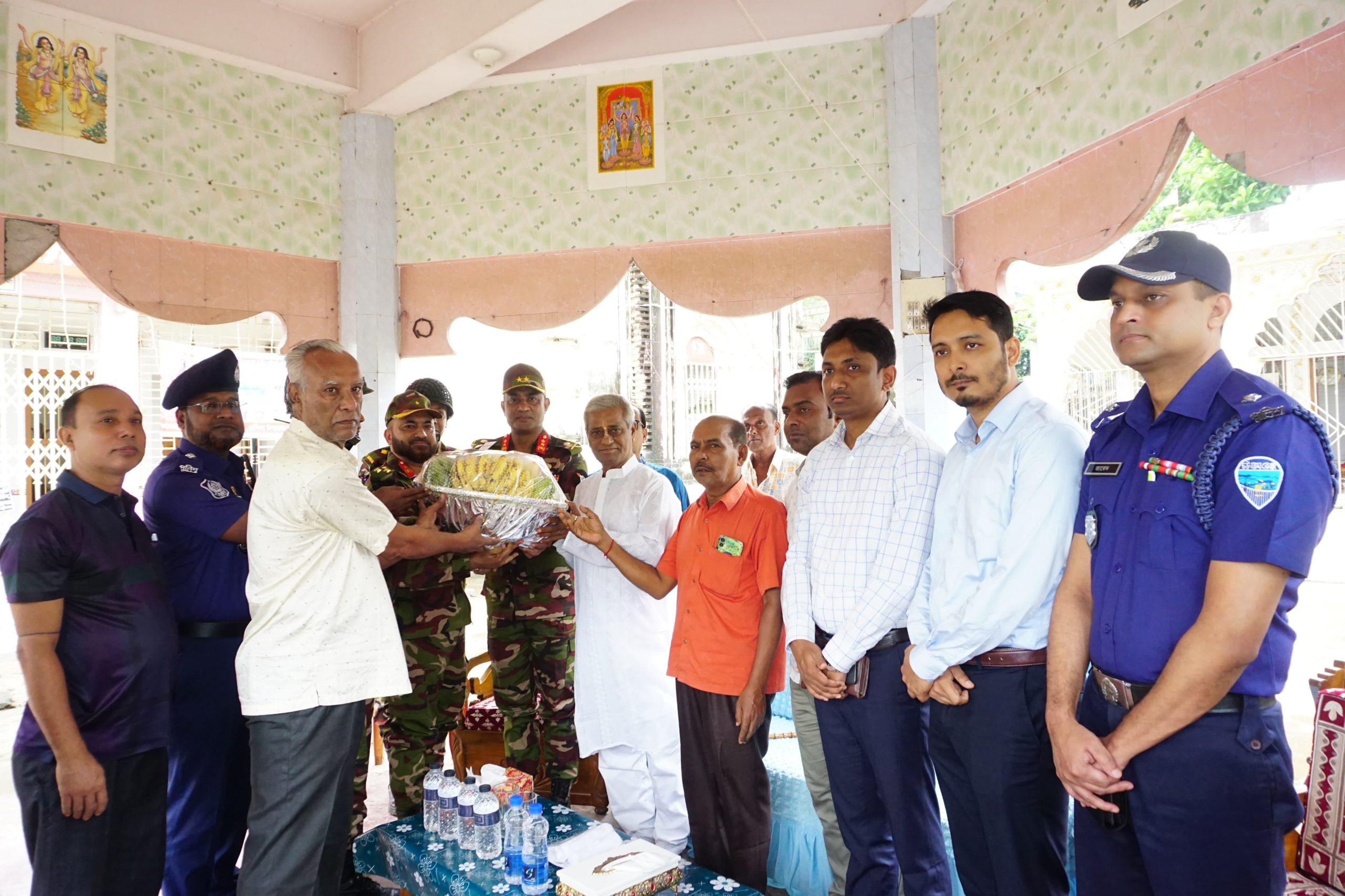 মন্দির পরিদর্শনকালে তিনি মন্দির কমিটির সভাপতি, সহ-সভাপতি, স্থানীয় প্রশাসনের প্রতিনিধিদের সঙ্গে শুভেচ্ছা বিনিময় করেন এবং পূজামণ্ডপে আগত ভক্ত-অনুরাগীদের সঙ্গে মতবিনিময় করেন। এসময় উপস্থিত ছিলেন কমান্ডার ৪৪ পদাতিক ব্রিগেড, অধিনায়ক ৩ ইস্ট বেংগল রেজিমেন্ট, চান্দিনা আর্মি ক্যাম্পের ক্যাম্প কমান্ডার, চান্দিনা উপজেলা নির্বাহী কর্মকর্তা (ইউএনও) মোহাম্মদ আশরাফুল হক সহকারী কমিশনার (ভূমি),ফয়সাল আল নুর চান্দিনা থানার অফিসার ইনচার্জ জাবেদ উল ইসলাম, ইলিয়টগঞ্জ হাইওয়ে থানার অফিসার ইনচার্জ রুহুল আমিন, উপজেলা আনসার কমান্ডারসহ প্রশাসন ও আইন-শৃঙ্খলা বাহিনীর অন্যান্য কর্মকর্তারা।